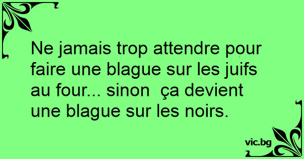 Ne jamais trop attendre pour faire une blague sur les juifs au four... sinon ça devient une blague sur les noirs.