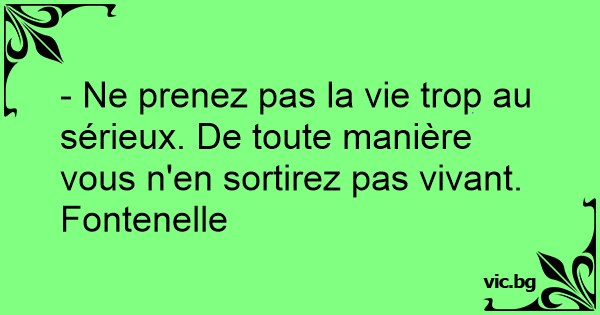 - Ne prenez pas la vie trop au sérieux. De toute manière vous n'en sortirez pas vivant.