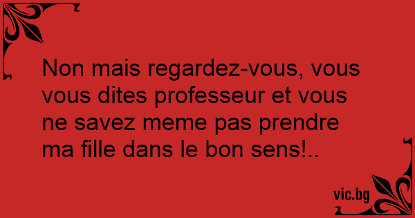 Non mais regardez-vous, vous vous dites professeur et vous ne savez meme pas prendre ma fille dans le bon sens!..