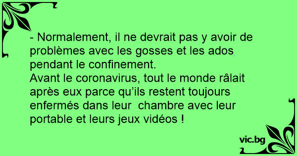 - Normalement, il ne devrait pas y avoir de problèmes avec les gosses et les ados pendant le confinement.