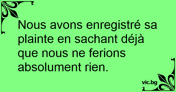 Nous avons enregistré sa plainte en sachant déjà que nous ne ferions absolument rien.