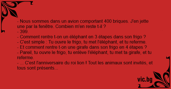 - ... C'est l'anniversaire du roi lion ! Tout les animaux sont invités, et tous sont présents sauf un... Lequel ?