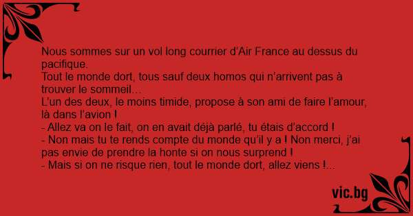 Au petit jour l’hôtesse passe dans les couloirs et demande si tout s’est bien passé… et là, non lоin des places de nos deux amoureux une petite vieille grelotte :