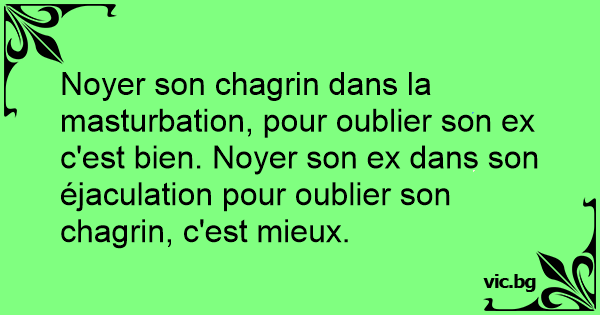 Noyer son chagrin dans la маsтurватiоn, pour oublier son ex c'est bien. Noyer son ex dans son éjaculation pour oublier son chagrin, c'est mieux.