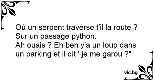 Ah ouais ? Eh ben y'a un loup dans un parking et il dit ' je me garou ?"