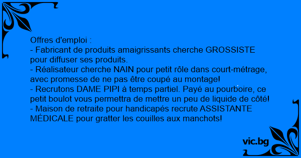 - Recrutons DAME PIPI à temps partiel. Payé au pourboire, ce petit boulot vous permettra de mettre un peu de liquide de côté!
