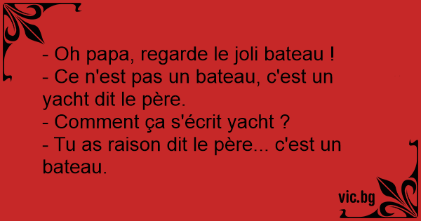 - Ce n'est pas un bateau, c'est un yacht dit le père.