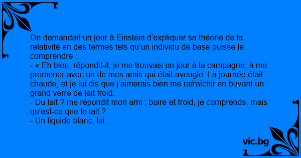 - Oh, s’exclama l’aveugle, maintenant je comprends ce que vous entendez par « lait ». »