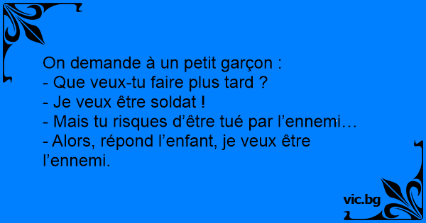 - Alors, répond l’enfant, je veux être l’ennemi.