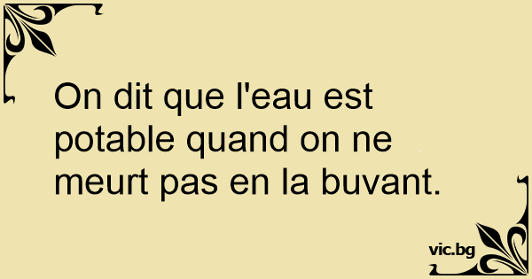 On dit que l'eau est potable quand on ne meurt pas en la buvant.