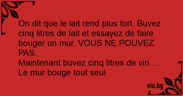 On dit que le lait rend plus fort. Buvez cinq litres de lait et essayez de faire bouger un mur. VOUS NE POUVEZ PAS.