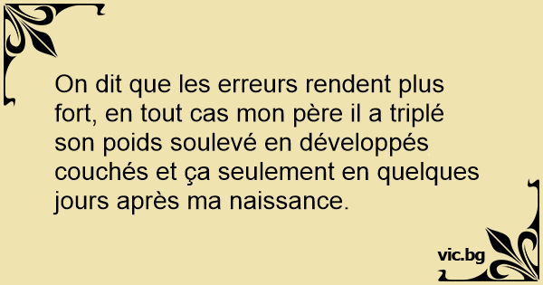 On dit que les erreurs rendent plus fort, en tout cas mon père il a triplé son poids soulevé en développés couchés et ça seulement en quelques jours après ma naissance.