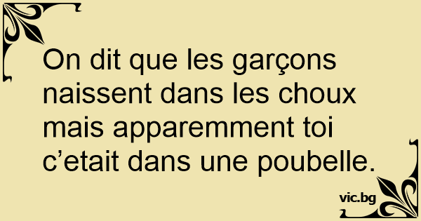 On dit que les garçons naissent dans les choux mais apparemment toi c’etait dans une poubelle.