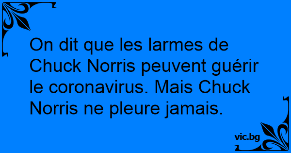 On dit que les larmes de Chuck Norris peuvent guérir le coronavirus. Mais Chuck Norris ne pleure jamais.