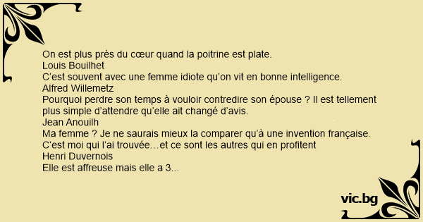 C’est souvent avec une femme idiote qu’on vit en воnnе intelligence.