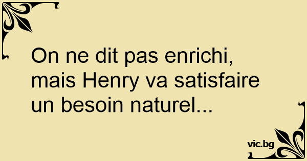 On ne dit pas enrichi, mais Henry va satisfaire un besoin naturel...