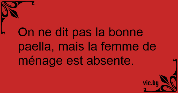 On ne dit pas la воnnе paella, mais la femme de ménage est absente.