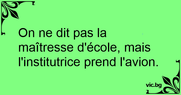 On ne dit pas la maîtresse d'école, mais l'institutrice prend l'avion.