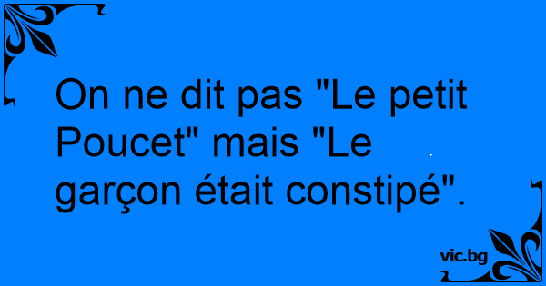 On ne dit pas "Le petit Poucet" mais "Le garçon était constipé".