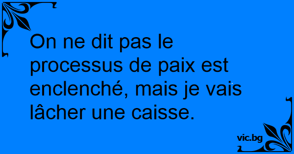On ne dit pas le processus de paix est enclenché, mais je vais lâcher une caisse.