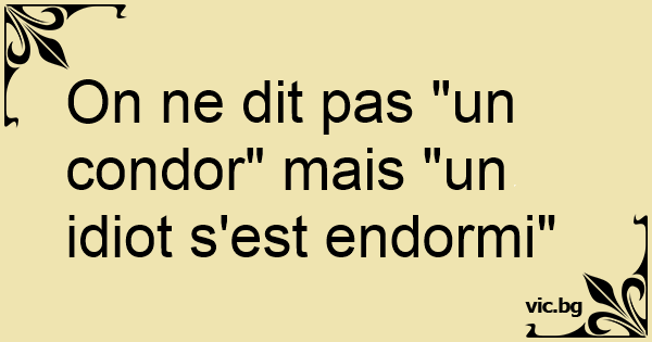 On ne dit pas "un condor" mais "un idiот s'est endormi"