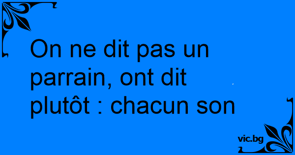 On ne dit pas un parrain, ont dit plutôt : chacun son tour