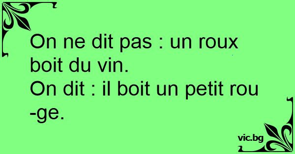 On ne dit pas : un roux boit du vin.