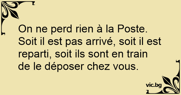 On ne perd rien à la Poste. Soit il est pas arrivé, soit il est reparti, soit ils sont en train de le déposer chez vous.