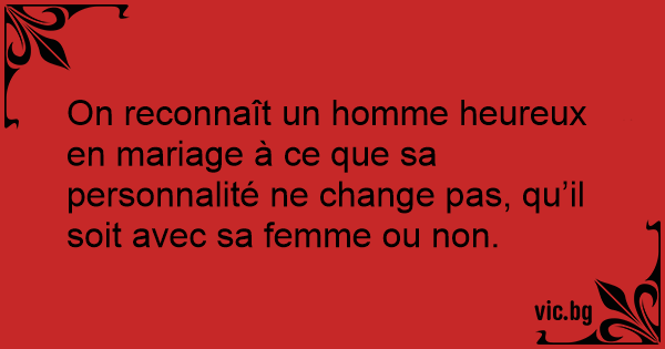 On reconnaît un homme heureux en mariage à ce que sa personnalité ne change pas, qu’il soit avec sa femme ou non.