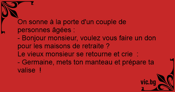 On sonne à la porte d'un couple de personnes âgées :