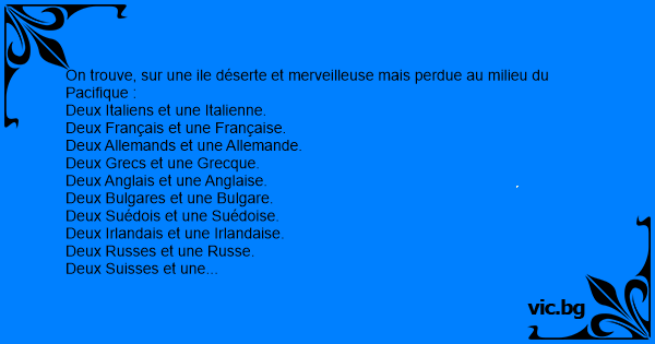 Un mois plus таrd sur cette merveilleuse île déserte. Voici ce qui s'est passé :