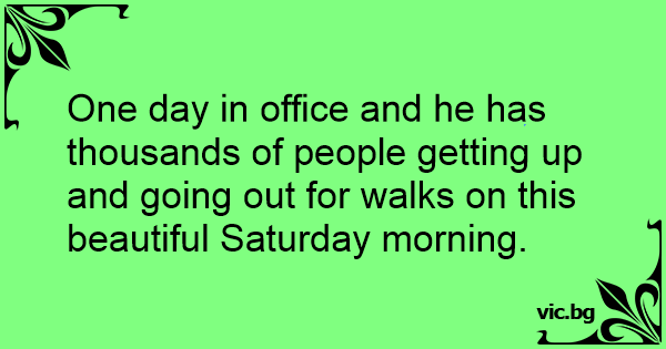 One day in office and he has thousands of people getting up and going out for walks on this beautiful Saturday morning.