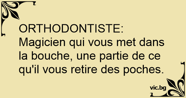 ORTHODONTISTE: Magicien qui vous met dans la bouche, une partie de ce qu'il vous retire des poches.