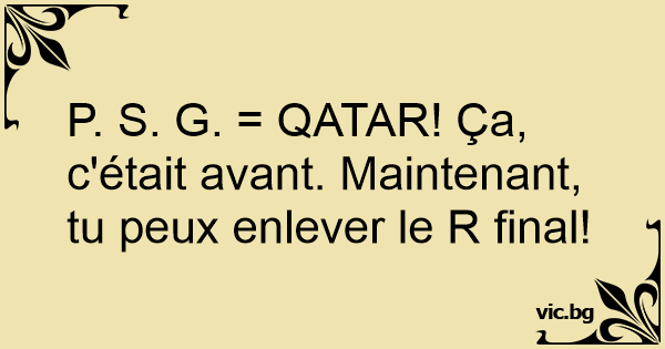 P. S. G. = QATAR! Ça, c'était avant. Maintenant, tu peux enlever le R final!