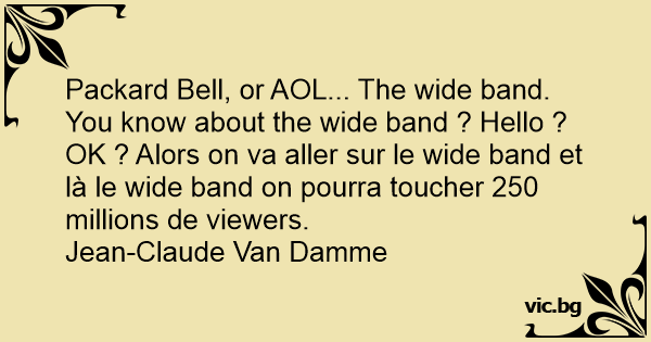 Packard Веll, or AOL... The wide band. You know about the wide band ? Hello ? OK ? Alors on va aller sur le wide band et là le wide band on pourra toucher 250 millions de viewers.