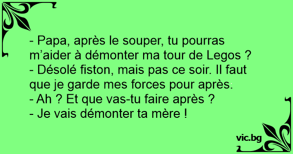 - Papa, après le souper, tu pourras m’aider à démonter ma tour de Legos ?