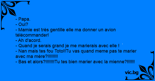 - Nan mais tes fou Toto!!Tu vas quand meme pas te marier avec ma mère?!!!!!!!!