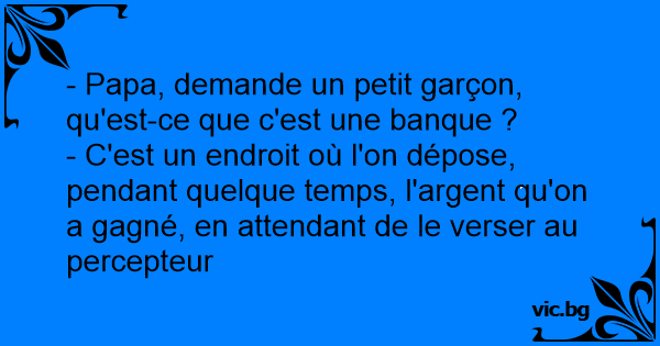 - Papa, demande un petit garçon, qu'est-ce que c'est une banque ?