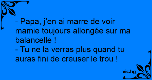 - Papa, j’en ai marre de voir mamie toujours allongée sur ma balancelle !