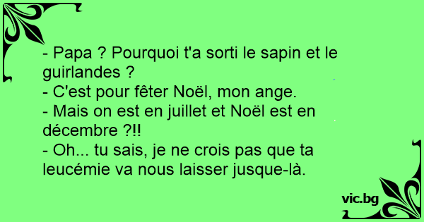- Oh... tu sais, je ne crois pas que ta leucémie va nous laisser jusque-là.