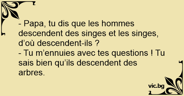 - Papa, tu dis que les hommes descendent des singes et les singes, d’où descendent-ils ?