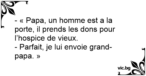- « Papa, un homme est a la porte, il prends les dons pour l’hospice de vieux.