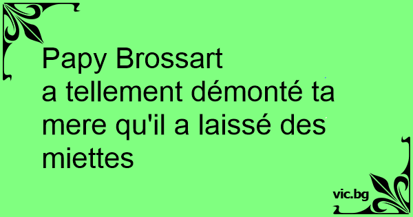 Papy Brossart a tellement démonté ta mere qu'il a laissé des miettes