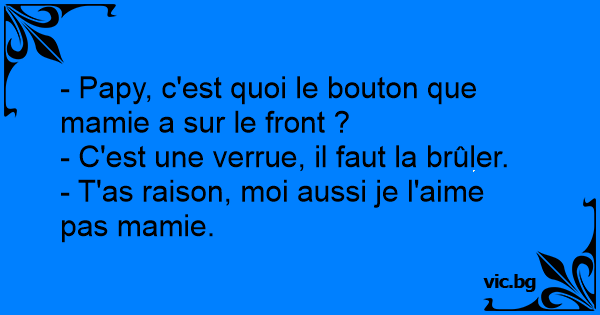 - Papy, c'est quoi le bouton que mamie a sur le front ?