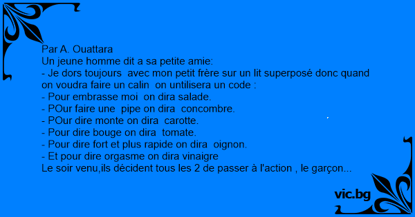 - Je dors toujours avec mon petit frère sur un lit superposé donc quand on voudra faire un calin on untilisera un code :