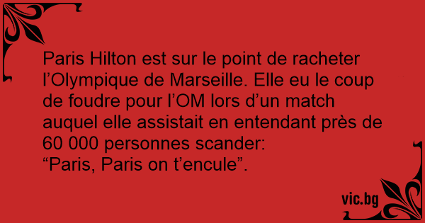 Paris Hilton est sur le point de racheter l’Olympique de Marseille. Elle eu le coup de foudre pour l’OM lors d’un match auquel elle assistait en entendant près de 60 000 personnes scander: