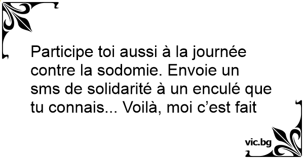 Participe toi aussi à la journée contre la sodomie. Envoie un sms de solidarité à un enculé que tu connais... Voilà, moi c’est fait
