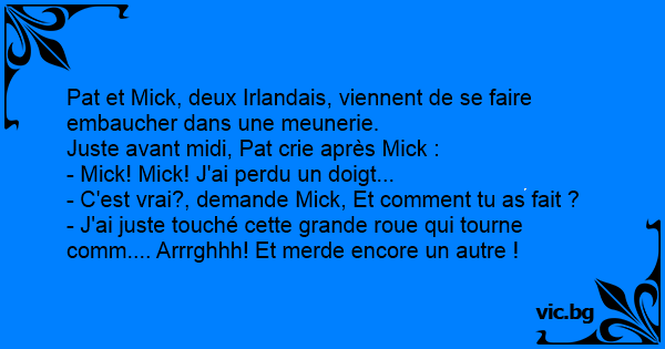 Pat et Мiск, deux Irlandais, viennent de se faire embaucher dans une meunerie.