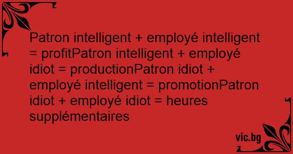 Patron intelligent + employé intelligent = profitPatron intelligent + employé idiот = productionPatron idiот + employé intelligent = promotionPatron idiот + employé idiот = heures supplémentaires