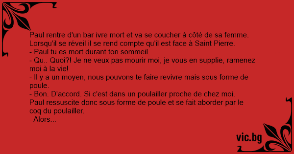 Paul ressuscite donc sous forme de poule et se fait aborder par le coq du poulailler.